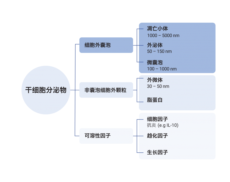 所有细胞都能分泌像细胞外颗粒般的纳米颗粒。来自脐带间充质干细胞的细胞外颗粒更具优势,因为这类干细胞年轻、活性强、生物功能更完整,因此其释放的质量也更高。